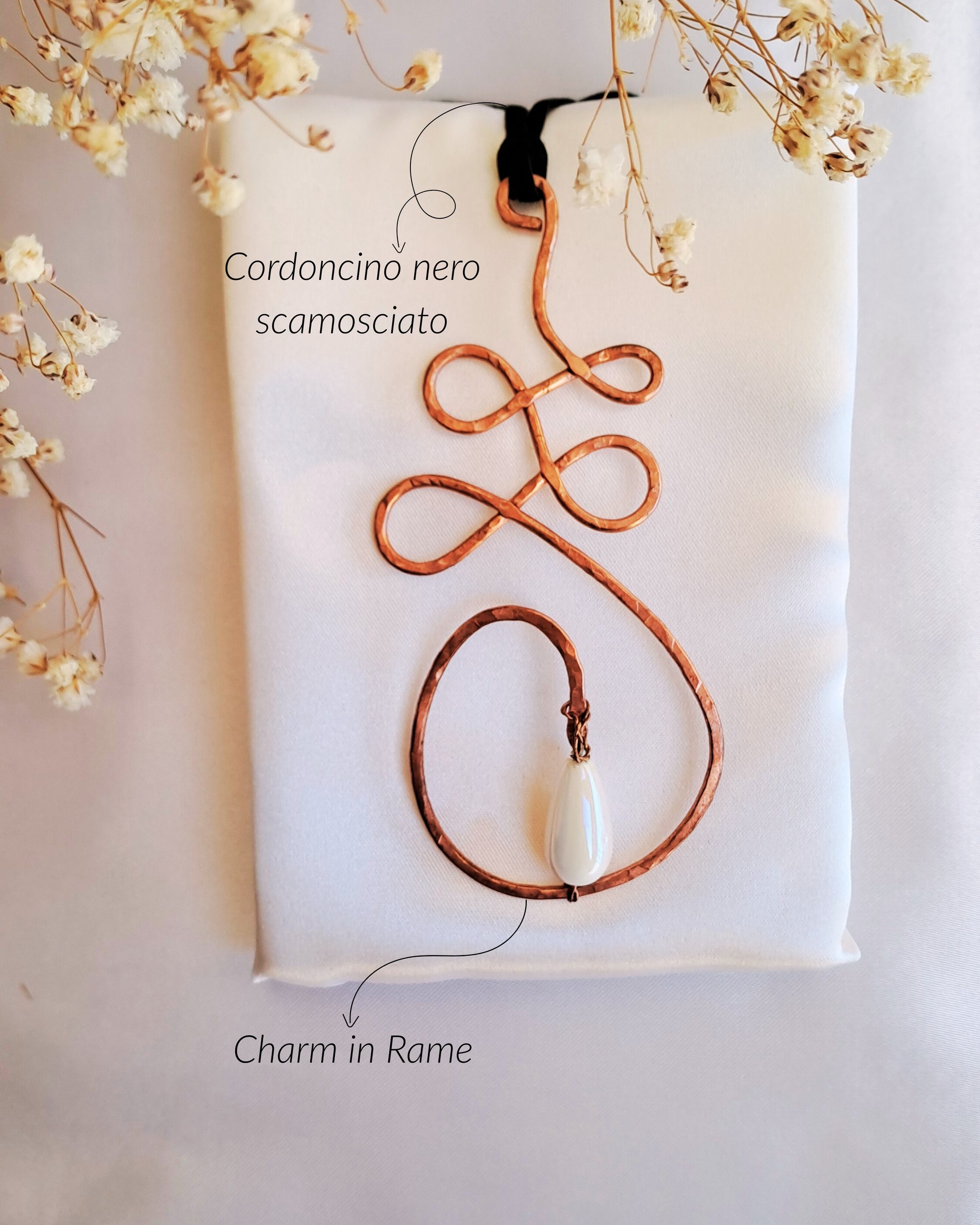 Materiali: ciondolo in rame, cordoncino nero scamosciato