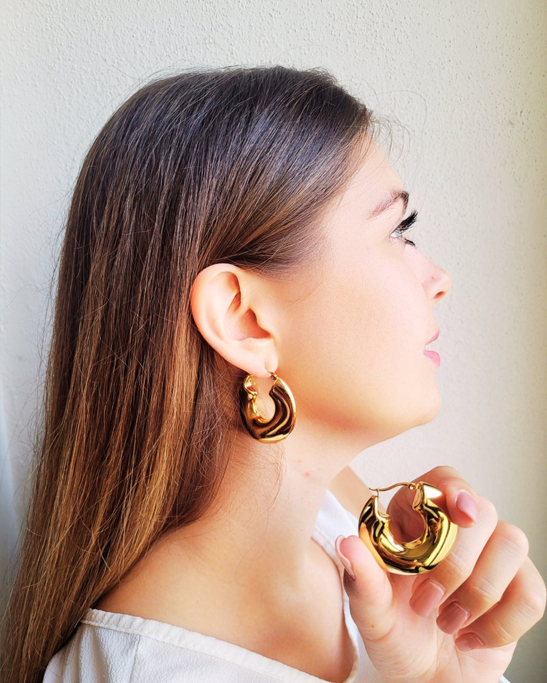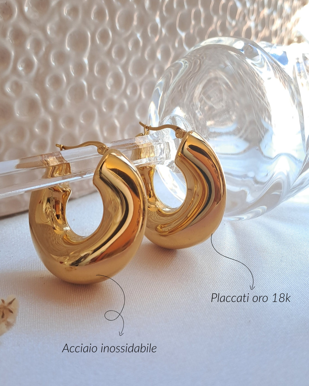 Orecchini realizzati in acciaio inossidabile placcato oro 18k. Gli orecchini Soho sono il dettaglio che accende il desiderio di scoprire Valencia: un mix di energia e calore che ti accompagna, donandoti la forza di vivere ogni attimo con passione.